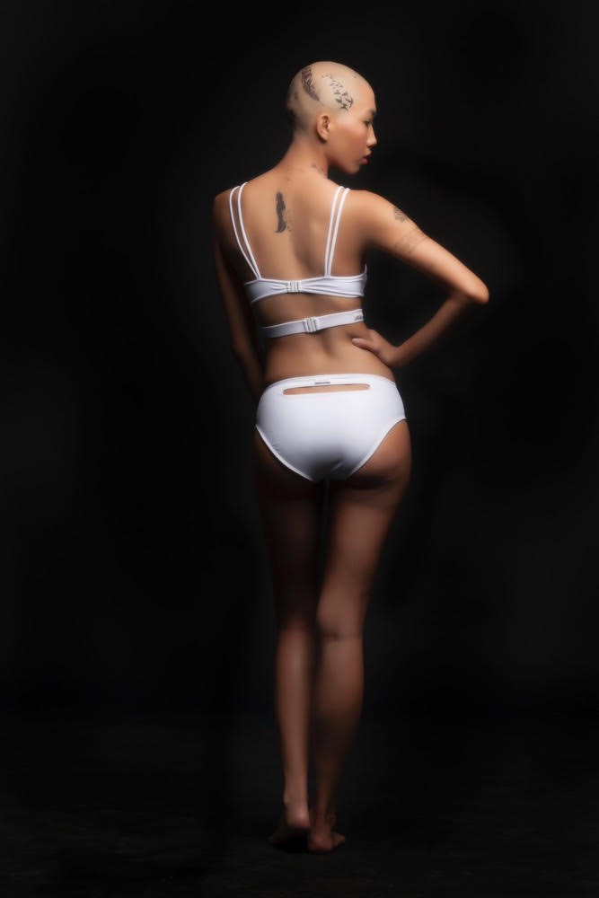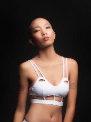 A modern, futuristic, and sporty look. This top can also be used as a bralet for your sporty activities.